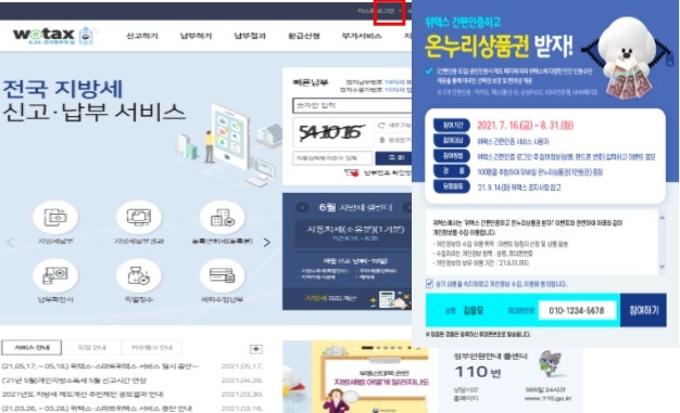 한편, 이번 서비스 개편을 맞아 오는 7월 16일부터 8월 31일까지 위택스에서 간편인증을 통해 로그인을 할 경우 100명을 추첨하여 소정의 모바일 온누리상품권을 지급할 예정이다.