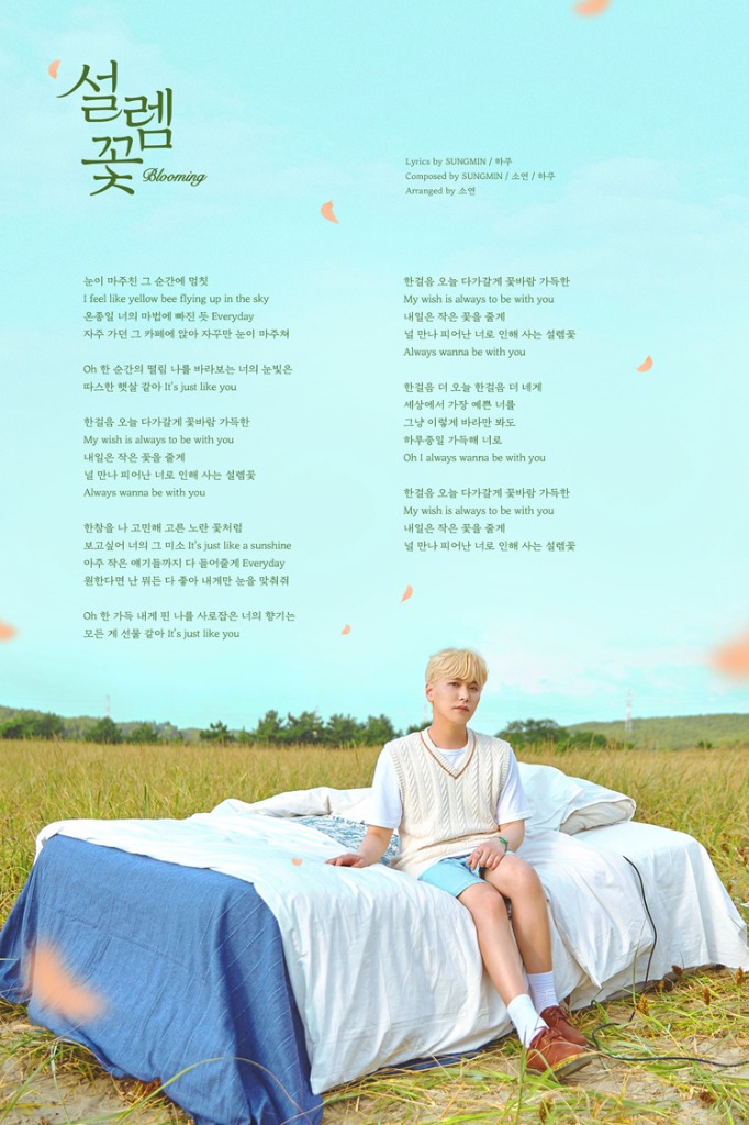 성민은 어제(25일)부터 양일간 공식 트위터를 통해 타이틀 곡 ‘Goodnight, Summer’(굿나잇, 서머)와 수록곡 ‘설렘꽃 (Blooming)’ 가사 포스터를 한국어, 영어, 중국어, 일본어까지 4개 언어로 공개하며 글로벌 팬들 사이 신보에 대한 기대감을 높였다.