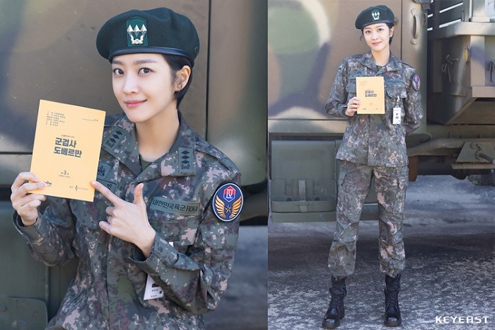 복수를 위해 군대에 들어온 만큼 웃을 때조차도 날선 감정을 숨기고 있던 캐릭터와는 반대로 조보아 특유의 밝고 생기 가득한 모습으로 눈길을 끈다. 뿐만 아니라, 인증숏을 위해 군용 차량 앞에서 ‘군검사 도베르만’ 대본을 들고 손짓하고 있는 조보아의 모습은 차우인과는 달리 장난기 넘치는 얼굴로 반전 매력을 발산한다.