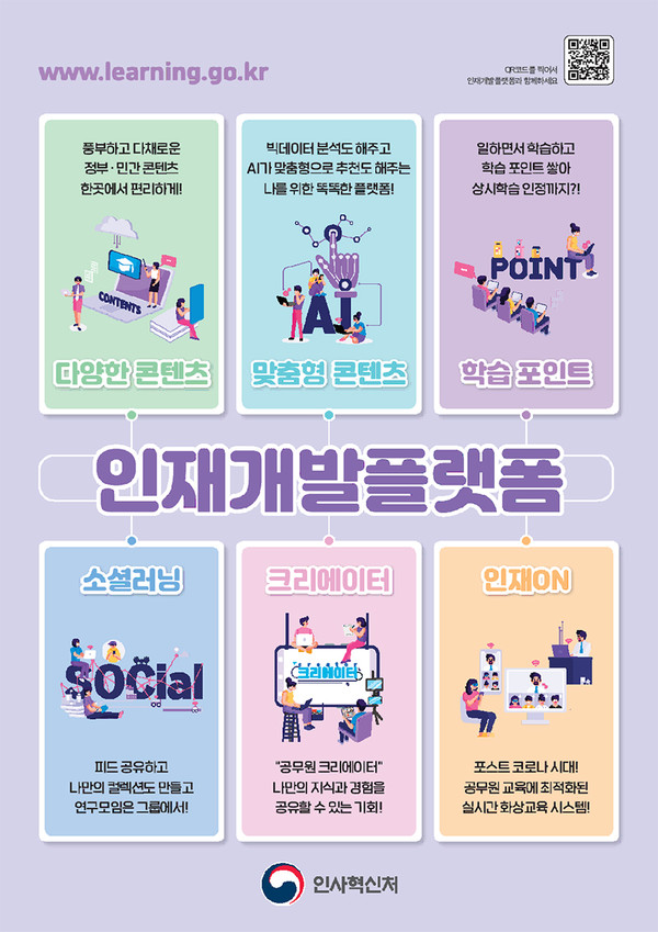 박용수 인사처 인사관리국장은 “인재개발플랫폼은 공무원들에게 필요한 교육을 적시에 제공해 시대가 요구하는 역량을 키워 일을 더 잘 할 수 있게 만드는 핵심 기반이 될 것”이라며 “앞으로 공직 내 학습문화 데이터가 계속 축적되면 이를 기반으로 과학적인 공무원 교육혁신도 가능해질 것으로 기대한다”고 말했다.