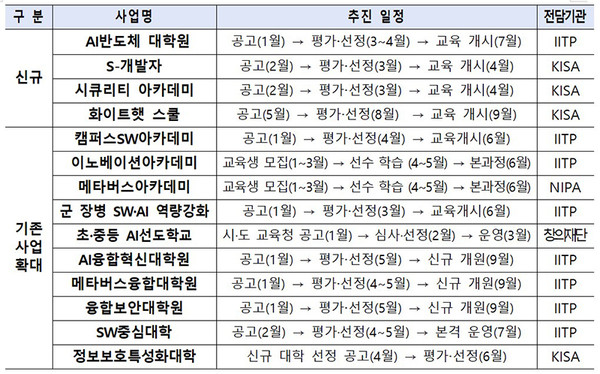 특히 지난해 발표한 ‘디지털 인재양성 종합방안’과 ‘사이버보안 10만 인재양성 대책’의 본격적인 이행에 나서면서 사업 신설과 기존 교육 과정 확대 등을 통해 연간 양성 규모를 지난해 대비 약 1만명 이상 확대할 예정이다.