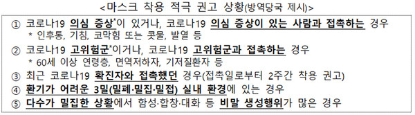 다만, 방역당국은 감염취약시설 중 입소형 시설, 의료기관·약국 및 대중교통 수단의 실내에서는 착용 의무를 유지합니다. 또 다음에 해당하는 경우 마스크 착용을 적극 권고합니다.