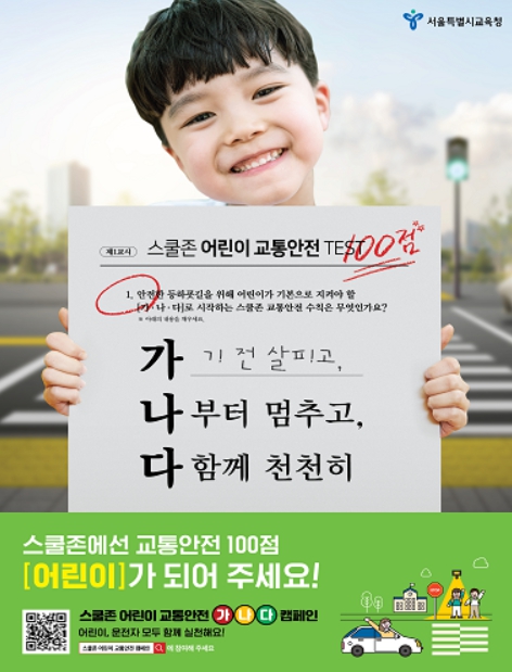 서울시교육청은 누구나 교통안전수칙을 쉽게 기억하고 따라할 수 있도록 우리말 슬로건 “가나다”를 활용해 캠페인을 전개한다.