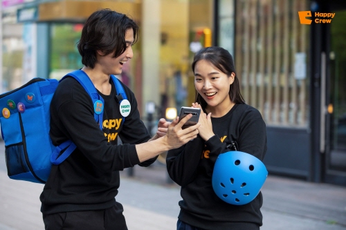 지난해 4월 초 론칭한 '해피크루(Happy Crew)'는 '행복(Happy)을 전하는 사람들(Crew)'이라는 의미로 만 19세 이상이면 누구나 도보 배달에 참여할 수 있는 서비스 플랫폼이다.