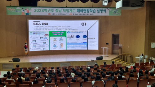 이와 관련해 교육청에서는 13일 아산 충남교육청과학교육원 대강당에서 학생, 보호자, 지도교사 320명을 대상으로 '2023년 직업계고 해외현장학습 설명회'를 개최했다고 밝혔다.