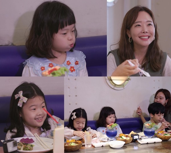 소유진 가족이 먹은 음식은 스테이크와 바닷가재가 함께 나오는 코스요리. 셰프의 현란한 칼질 퍼포먼스에 삼 남매의 두 눈이 휘둥그레지더니, 둘째 백서현은 “요리 마술사 같아. 아빠는 이렇게 칼질 못 하던데”라며 아버지 백종원의 칼질을 저격해 소유진의 웃음을 터트린다.