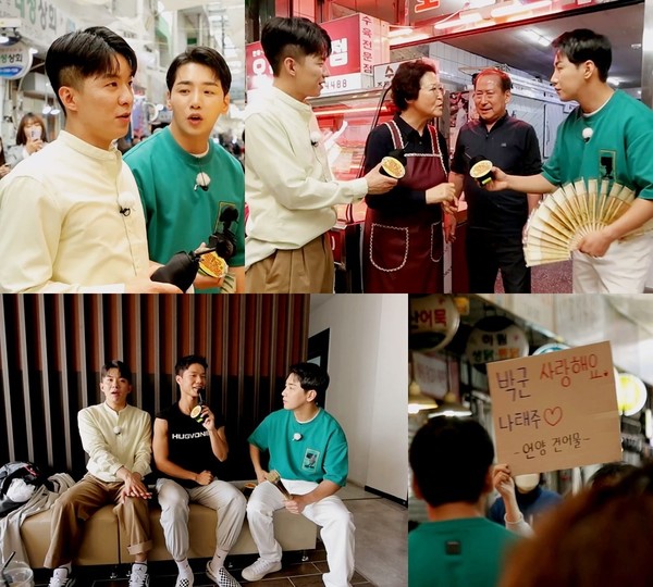 하지만 이후 방문한 반송큰시장에서 나태주와 박군은 물 만난 물고기가 된다. 두 사람이 반송큰시장에 등장하자마자 구름 떼 관중을 몰고 다니며 ‘역시 어머니들의 아이돌 스타’라는 애칭을 제대로 입증했다는 후문. 급기야 어머니들은 “저 짝만 보지 말고 이 짝도 봐줘요”를 외치는 등 두 사람의 관심을 끌기 위한 경쟁까지 벌인다. 과연 부산 해운대구에서 벌어진 나태주와 박군의 인지도 온도 차는 어땠을지 ‘태군노래자랑’ 본 방송을 통해 확인할 수 있다.