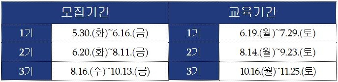 각 기수별 교육 신청자를 대상으로 서류와 면접 평가를 거쳐 교육생을 선정할 예정이다.