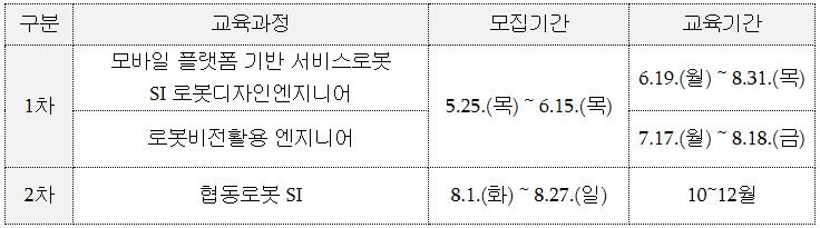 ‘서울 로봇 아카데미’는 1차 모집은 6월 15일(목)까지 ‘서울 로봇 아카데미 누리집’(http://seoul-robotacademy.kr) 및 온라인접수 창구(https://url.kr/4fg3lz)를 통해 접수받는다. 로봇 분야에 관심이 있고, 취·창업에 의향이 있는 대학생, 취업준비생, 예비창업자, 재직자 등 로봇 관련 기본 소양을 갖춘 일반 시민이라면 누구나 신청할 수 있다.