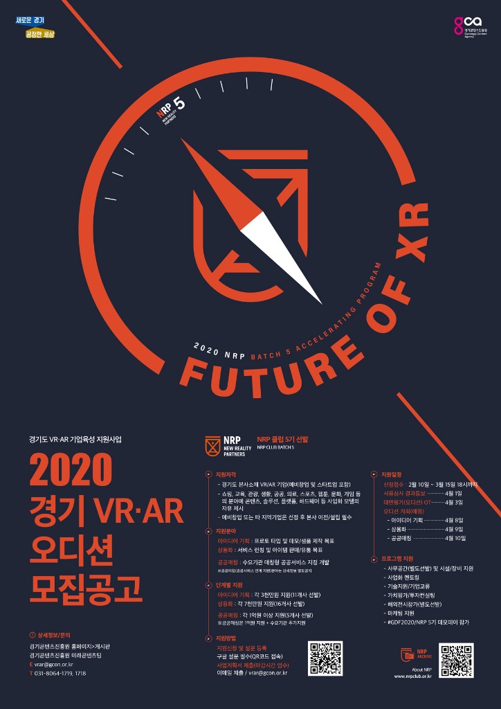 이번 공모는 4월 개최 예정인 경기도 VR/AR 기업육성 지원사업 ‘2020 경기 VR/AR 오디션’의 일부로, 도는 올해 ‘공공매칭’ 분야를 신설했다.