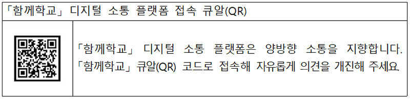 교육부는 ‘함께학교’ 플랫폼에 토론하는 기능도 추가해 현장 교원과의 대화에서 제안된 정책과제, 추진 상황 탑재 및 정책환류 사항을 투명하게 공개할 계획이다.