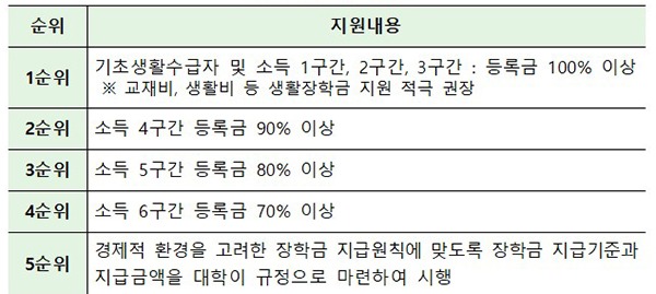 아울러 교육부는 장학금 지원과 병행해 대학들이 등록금을 동결·인하하고 장학금을 증액하도록 유도해 학생들의 학비 부담을 완화하고 있다.