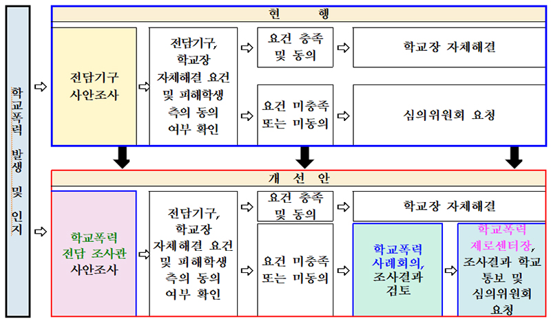 학폭 처리 제도 개선방안…학폭 발생시 전담조사관→사례회의→학폭위