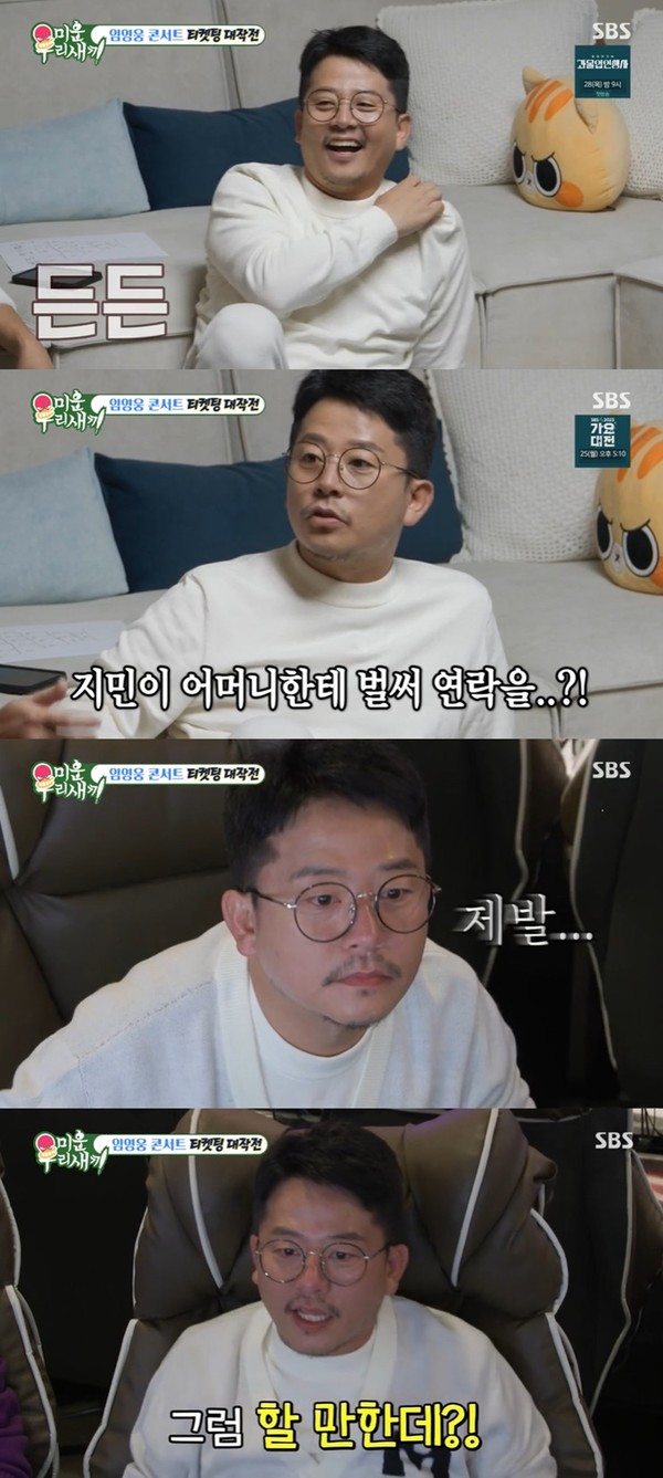 김준호는 17일(어제) 방송된 SBS ‘미운 우리 새끼’(이하 ‘미우새’)에서 홍진호, 장동민, 김종민과 함께 임영웅 콘서트의 티켓팅 도전에 나섰다.