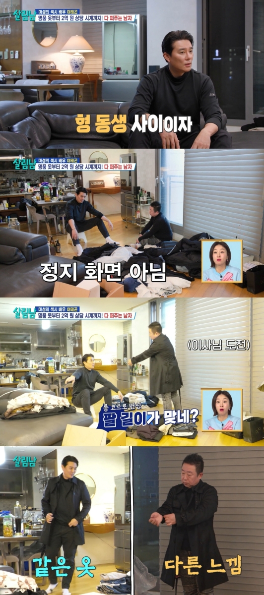 이후 수북한 옷 무덤을 마주한 두 사람은 팔을 걷어붙이고 옷 정리를 시작했다. 이태곤은 이때도 나눔 정신을 발휘해 이사에게 선물할 옷을 찾았다.