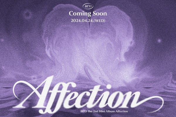이를 통해 비오의 새 앨범명 ‘Affection’과 발매일인 24일이 처음 베일을 벗었다. 애착, 애정을 뜻하는 ‘Affection’과 더불어 보랏빛의 거대한 하트가 일렁이는 듯한 신비로운 일러스트가 비오의 새 음악과 메시지를 향한 궁금증을 높인다.