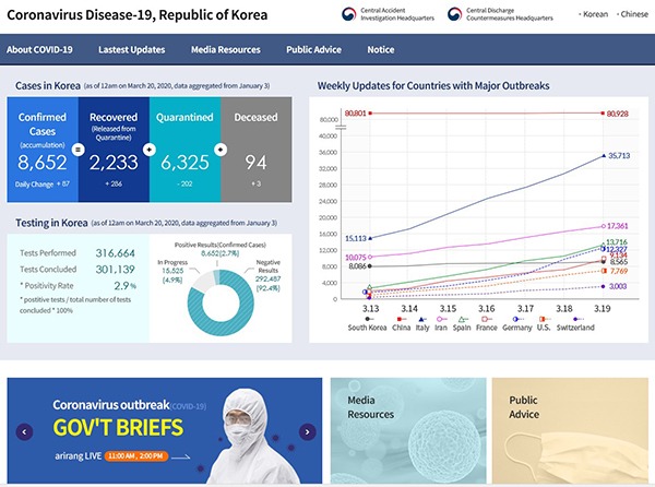해당 마이크로페이지는 우리나라의 코로나19 현황, 방역체계 및 환자 치료와 관리 등에 대한 주요 정보를 제공하며, 일상에서 지켜야 하는 행동수칙과 국민안심병원 이용 방법 등도 소개한다.