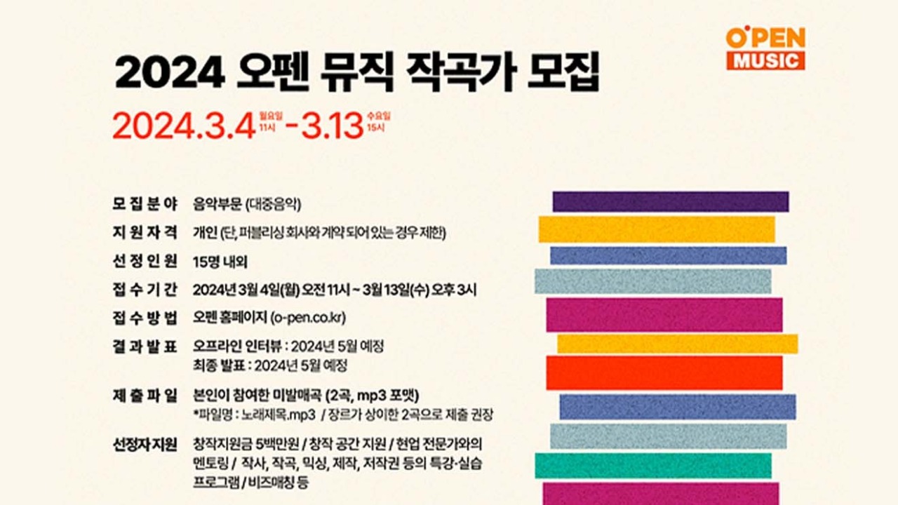 창작자 (Pen) 를 꿈꾸는 이들에게 열려 있는 (Open) 창작공간과 기회 (Opportunity) 를 제공한다는 의미의 오펜 (O'PEN) 은 콘텐츠 기획 ∙ 개발 , 제작 ∙ 편성 , 비즈매칭까지 전 과정을 통합적으로 지원하는 CJ ENM 의 신인 창작자 발굴 , 육성 프로젝트다 . 창작자에게는 작품 제작 및 데뷔 기회를 제공하고 , 업계에는 신선한 아이디어를 가진 새로운 크리에이터 발굴을 지원해 콘텐츠 산업의 선순환 구조를 확립하고 지속가능한 성장 기반 마련을 위한 대표적인 사회공헌 활동으로 손꼽힌다 . 2017 년 단막 · 영화 부문과 2018 년 뮤직 부문을 발족한 이래 지금까지 233 명의 작가와 89 명의 작곡가를 배출해왔다 .