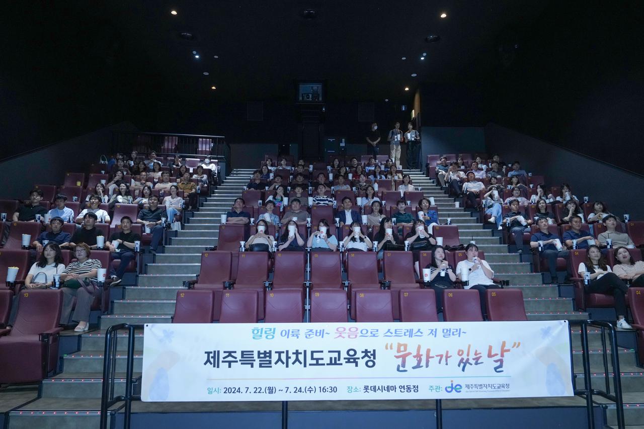 제주특별자치도교육청( 이하 도교육청)은 직원들의 업무 스트레스 해소와 소통 증진을 위해 7월 22일(월)부터 24일(수) 3일간 도교육청 직원들을 대상으로 영화 <파일럿> 단체 관람 행사를 진행하고 있다.
