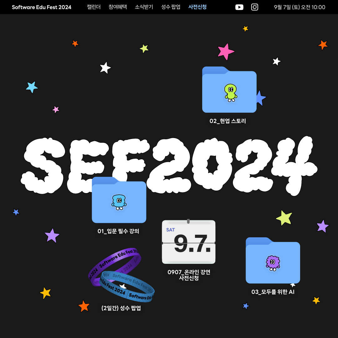 네이버 커넥트재단 조규찬 이사장은 “이번 ‘SEF2024’에서는 AI와 소프트웨어에 대한 주목도가 높아진 만큼 IT 기술에 관심 있는 모든 사람들이 즐겁게 소통하고 다양한 정보를 공유할 수 있도록 다채로운 강연과 팝업 이벤트를 준비했다”며 “커넥트재단은 혁신적인 소프트웨어 교육을 선도하는 대표 주자로서 누구나 미래 기술에 대한 배움의 기회를 가질 수 있도록 적극적인 노력을 이어갈 것”이라고 밝혔다.