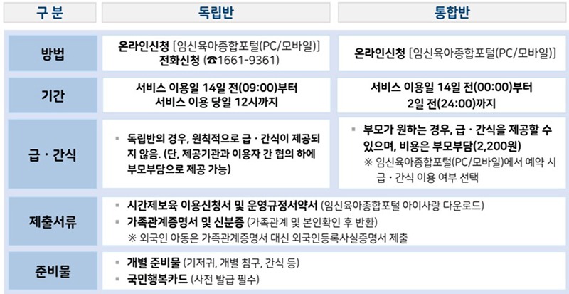 다만 시간제 보육 서비스는 각 지역의 어린이집·육아종합지원센터를 제공기관으로 지정하고 독립반만 운영해 왔으나, 이용자의 수요를 모두 충족하지 못했다.