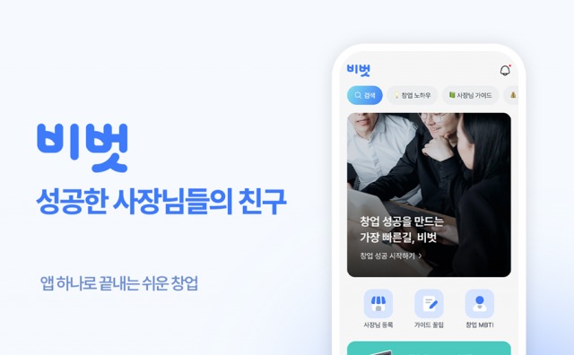 한편 ‘비벗’은 앱 출시를 기념해 경품 이벤트와 재미로 보는 사장님 MBTI 테스트도 진행 중이다. 온·오프라인 창업 지원 서비스 ‘비벗’은 애플 앱 스토어와 구글 플레이스토어를 통해 무료로 다운 받을 수 있다.