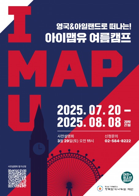 송파 마천청소년센터는 영국과 아일랜드에서 진행되는 ‘2025 아이맵유(I MAP U) 여름방학 영어캠프’의 참가자 모집을 시작했다고 14일 밝혔다. 이번 해외영어캠프는 여름방학 기간에 맞춰 운영되며, 한국 초·중등 청소년들이 유럽 현지 청소년들과 함께 학습하고 교류할 수 있도록 기획됐다.