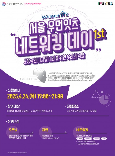 서울 우먼잇츠 커뮤니티는 IT 분야에 관심 있는 여성이라면 누구나 가입할 수 있으며, 행사에 대한 자세한 정보와 참여 방법은 서울시여성가족재단 공식 홈페이지(www.seoulwomen.or.kr)에서 확인할 수 있다.