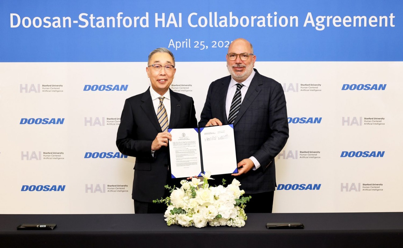 두산은 이러한 피지컬 AI 추진의 일환으로 최근 미국 스탠포드 대학의Human-Centered AI 연구소(HAI)와 산학 협력 파트너십을 맺었다. 이 자리에는 박지원 두산그룹 부회장과 제임스 랜데이(James Landay) HAI 공동연구소장 등이 참석했다.