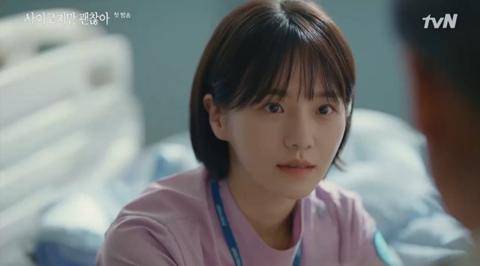 지난 20일 첫 방송된 tvN 토일드라마 '사이코지만 괜찮아'(연출 박신우, 극본 조용) 1회에서 남주리(박규영 분)는 '괜찮은 정신병원'의 정신보건 간호사로 등장, 생명이 위급한 환자 고대환(이얼 분)을 수술하기 위해 보호자 동의서를 받으려고 그의 딸인 고문영(서예지 분)을 찾아갔다.