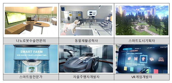 이밖에도 VR체험 콘텐츠를 활용해 다친 동물의 재활을 도와주는 동물재활공학사와 가상현실 게임을 개발하는 VR게임개발자, 스스로 운전하는 자동차를 개발하는 자율주행차개발자의 업무를 경험할 수 있다.
