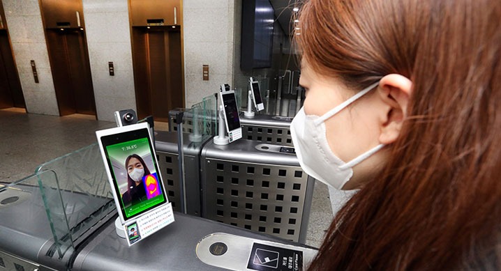 임직원이 사옥 출입시 얼굴인식을 통해 체온측정, 마스크 착용 확인, 신분확인이 모두 가능해지는 ‘접촉 제로’ 출입시스템을 구축한다.