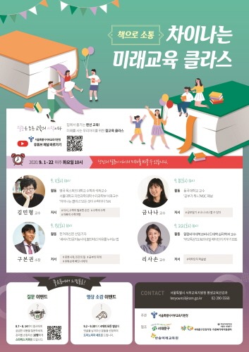 '책으로 소통 - 차이나는 미래교육 클라스'는 인터뷰 형식의 랜선 온라인 강연으로 학습자의 궁금한 질문을 사전에 공모해 명사들이 답변하는 형태의 소통형 강연으로 서부교육지원청 유튜브 채널에서 9월 1일부터 매주 화요일 10시, 4주간 공개된다.
