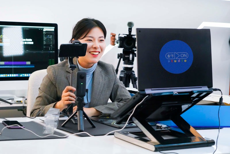 '촬영 ON 스튜디오'는 교육 수강 및 영상 촬영용 스마트폰과 마이크, 조명, 짐벌 등 촬영 장비, 영상 제작 교재 등으로 구성된 영상 제작 교육 패키지로 학교로 전달된다.