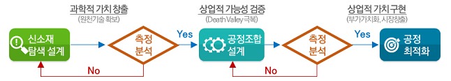 또한 실험실에서 구현된 소재의 우수한 특성이 양산 공정에서도 그대로 빠르게 구현될 수 있도록 데이터, 시뮬레이션, 모델링 등을 활용한 공정개발 및 공정최적화 솔루션을 제공한다.