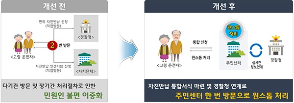 아울러 고령자 스스로 운전면허를 자진 반납할 유인을 제공하기 위한 지원사업을 계속하면서 ‘원스톱 시스템’ 전국 확산을 함께 추진한다.