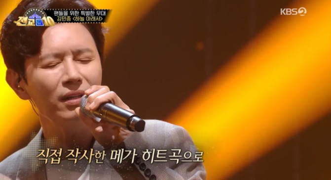 김민종은 지난 19일 방송된 KBS 2TV 예능 프로그램 ‘전교톱10’에 히든 판정단으로 등장해 1992년, 1993년에 발매된 메가 히트곡 ‘또 다른 만남을 위해’와 ‘하늘 아래서’를 열창, 현장을 단숨에 압도했다.