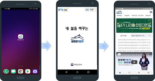 한창섭 행안부 정부혁신조직실장은 “광화문1번가 모바일 앱이 출시되면 많은 국민이 정책에 좀 더 쉽게 참여할 수 있을 것으로 기대된다”고 밝혔다.