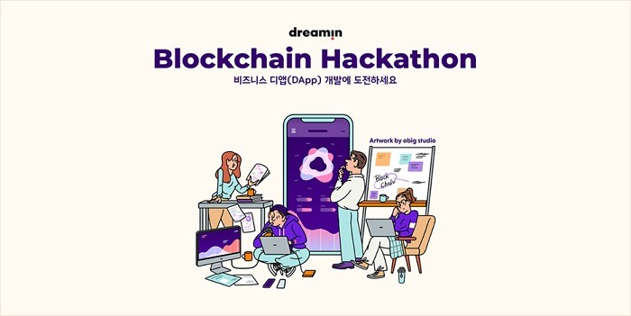 드림인(dreamin) 블록체인 해커톤은 블록체인을 활용하여 비즈니스 앱을 개발하는 행사다. 해커톤은 해킹(hacking)과 마라톤의 합성어로 한정된 기간 안에 기획자, 개발자, 디자이너 등 참여자가 팀을 꾸려 아이디어를 도출하고 이를 토대로 비즈니스 모델을 완성하는 것을 일컫는다.