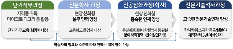 주요 내용으로는 먼저 교육과정(단기 직무 과정∼전문기술석사과정)을 직무 중심으로 개편·고도화다.