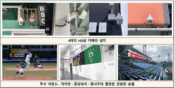 투수 마운드, 외야, 1루석, 더그아웃, 중앙석, 행사 무대에 촬영 카메라를 설치해 다시점 중계 영상을 송출하고 3차원(3D) 입체사진(홀로그램)을 통해 오늘의 경기 정보, 선수단 약력(프로필), 퀴즈, 게임 등의 콘텐츠를 제공한다.
